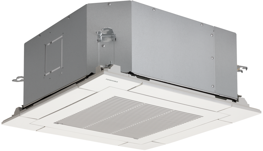 Внутренний блок Toshiba (Тошиба) MMU-AP0057MH-E относится к кассетному типу, а значит используется для высоких помещений с подвесными потолками. Декоративная панель не только скрывает блок, но и выполняет ряд полезных функций, поскольку содержит заслонки и датчик приема сигнала от пульта ДУ. Заслонки способствуют распределению потока воздуха.